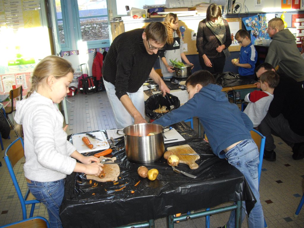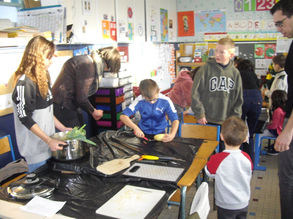 Puis des parents et grands-parents- que nous remercions- sont venus nous aider pour les ateliers cuisine: soupes, cakes salés et gâteaux sucrés.