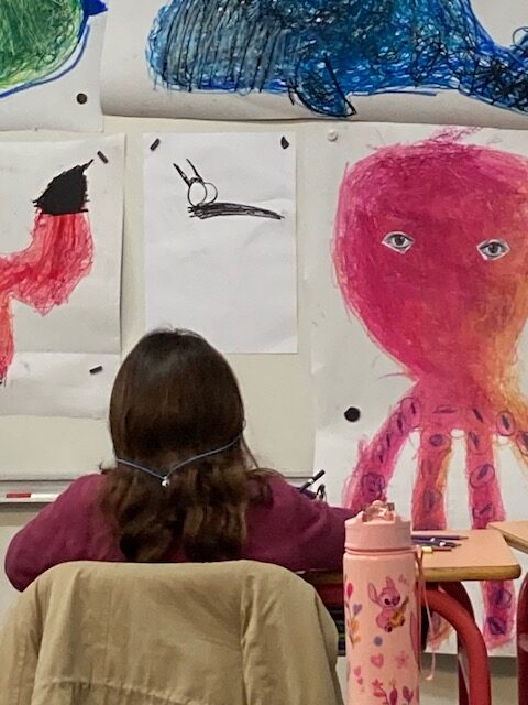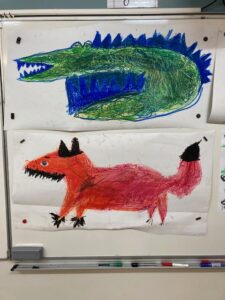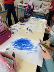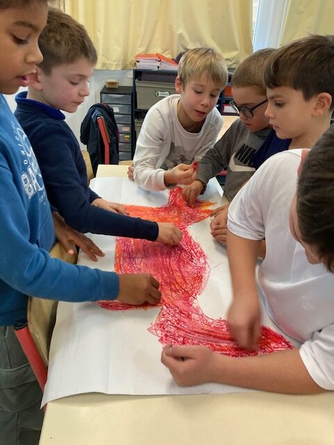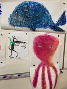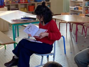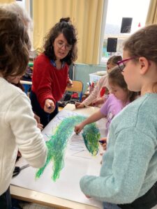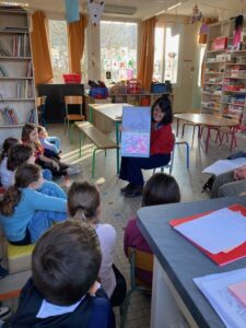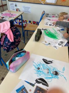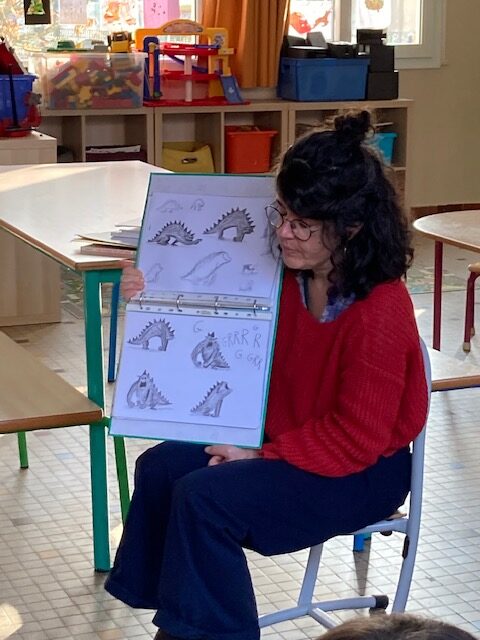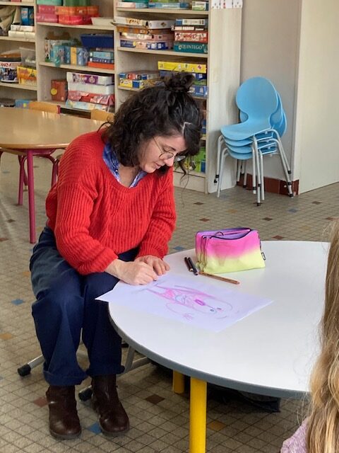 Le mardi 16 décembre, dans le cadre du parcours bibliothèque, Marjolaine Leray, illustratrice, est venue à la rencontre des CE2-CM1. Après avoir étudié durant deux séances des albums qu’elle a illustrés, nous avons appris à créer à notre tour des illustrations.